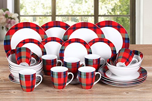 32 Piece Red Tartan Porcelain Dinner Set