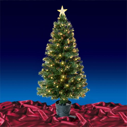 Description : This beautiful artificial tree is part of our stunning range of fibre optic Christmas trees. Measuring 4ft (120cm), this green tree features hundreds of tiny fibres which dance through the colour spectrum. They glitter and glisten, creating an amazing light display. This fantastic tree also includes warm white LEDs on the branch tips and a top star which glow on and off. Perfect for adding some sparkle to you home this festive season! The round, dark green, plant pot style base is mains operated and houses a single lamp and rotating wheel which generate the stunning, colour changing fibre optic effect. The LEDs are controlled by a cable at the bottom of the tree which must be attached to the base for them to function. Some basic home assembly is required and the transformer is included. Please note that this tree is intended for indoor use only and not suitable for display outside. Height: 4ft (120cm) including base Branch Width: 62cm at widest point with branches fully opened out Numb...