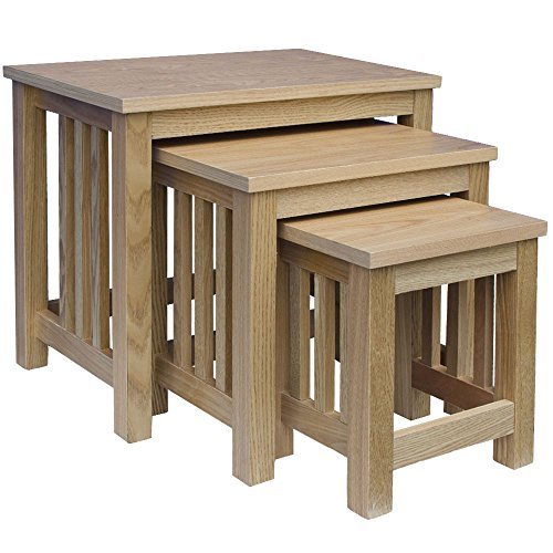 Description : Stunning New Product With A Modern Stylish Design, The Ashmore Nest Of Tables. The Ashmore Nest Of Tables Cleverly Combines Style And Functionality With Outstanding Value For Money. The Tables Boast Neutral Tones, Sophisticated Slatted End Panels And Have Been Designed To Slot Together For Storage Convenience. Each Table Is Solidly Designed And Constructed And Features An Extremely Hard Wearing, High Quality Ash Veneer Finish. This Item Will Be Delivered Flat Packed For Home Self Assembly, Easy To Follow Instructions Will Be Provided. The Ashmore Nest Of Tables Will Be A Welcome Addition To Your Home. Largest: W 53.5 x D 34 x H 47.5 Cm Approx. Medium: W 40.8 x D 29 x H 40 Cm Approx. Smallest: W 28.8 x D 24 x H 33 Cm Approx.