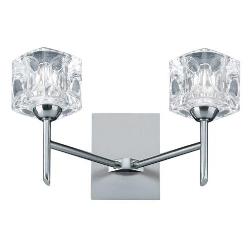 Description : Ice Cube satin silver finish halogen 2-light wall bracket with moulded concave clear Ice cube glasses & halogen G9 capsule bulb. Switched.