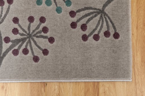 Aspect - Pandora-Modern Large Rug with Floral Pattern-Light Grey with Grey Stems & with Purple, Black & Teal Flowers 160x230cm