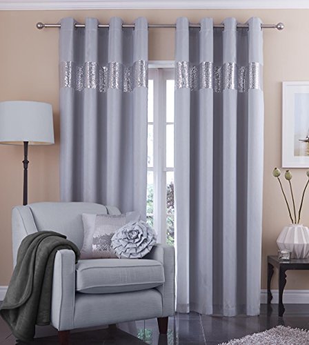 Catherine Lansfield Home Silk Sequin Embellished Eyelet Lined Curtains, Silver, 66 x 72 Inch