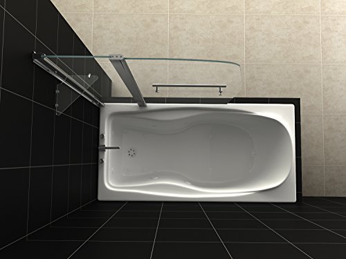 HNNHOME 180° Pivot Sail Style Double Panel Over Bath Shower Screen 6 mm Glass With Towel Handle