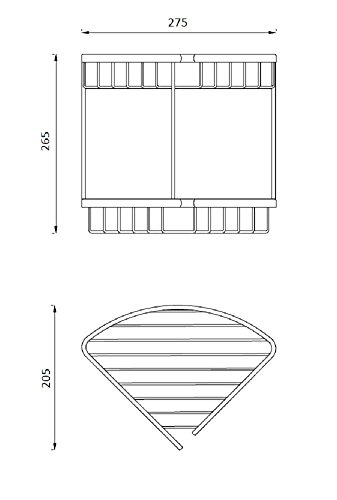 Description : This compact double corner wire basket is an excellent organiser.Whether it be soaps, shampoos or sponges, this shower basket is large and deep enough to conveniently store them all. It is a solid brass metal construction that is then chrome plated. This ensures it's durability and should serve as a useful accessory for a number of years to come. The wired frames ensure water always passes though leaving it as clean as ever.What's more it is easy to fit, with all the fixings (as pictured) included. The chrome cover caps finish off a sleek and tidy look. It comes with a 10 years manufacturer's guarantee. Overall dimensions: Width 275 mm x Height 265 mm x Depth 205 mm (from corner) The height of each basket is 50 mm and the gap between the baskets is 167 mm. The distance from the bottom of the lower basket till the bottom of the upper is 214 mm. The distance from the corner to the screw holes is between 110-120 mm. Please note these are all approximate dimensions. Stylish, practical and ...