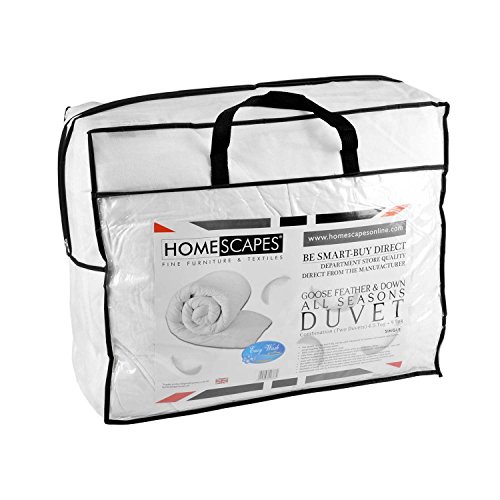 Homescapes Single All Seasons (9 Tog + 4.5 Tog) - Luxury White Goose Feather & Down Duvet - 100% Cotton Anti Dust Mite & Down Proof Fabric - Anti Allergen - Washable at Home Quilt