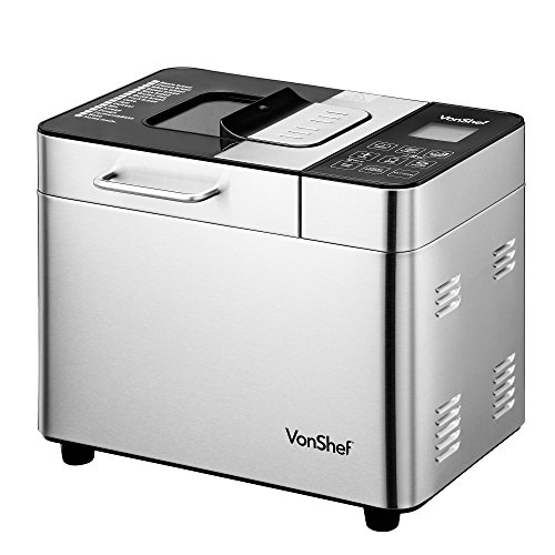 Description : Enjoy the taste and smell of high-quality, freshly baked bread time after time, without having to leave the comfort of your home. What's more, with the VonShef Premium Breadmaker, you're in control. Preference is everything when it comes to food these days and this Breadmaker has been designed with variety in mind. With 17 program modes available, offering recipe functions for breads ranging from standard white to wholegrain, gluten-free to rice bread, you're bound to find a type that meets your own personal preference. Buying bread from a supermarket can be a case of pot luck when it comes to finding a loaf that meets your individual tastes. With the VonShef Breadmaker you have the ability to not only pick the kind of bread you want to make but how it will look too. There's the option to choose your preferred crust colour, as in how light or dark you like it, as well as three different size options, allowing you to tailor the size of the loaf depending on how often and by how many it ...