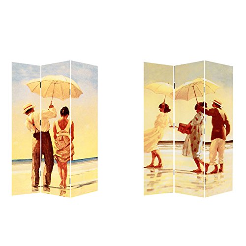 6FT Tall 3 Panel 2 Fold Sunshade Beach Room Divider Canvas Dressing Screen From Lillyvale
