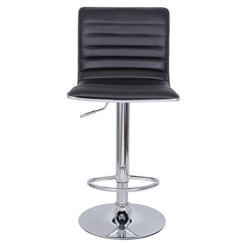 Description : Note: Please note that the joints of the plastic frame(silver) and rubber strip (black) are normal and will not affect the firmness of the seat. They are not the defects of this product, please feel free to use. Product Parameters: Size of Seat: 40 x 42 cm Height of Backrest: 33 cm Diameter of the stand: 41 cm Adjustable Height up to the Seat: 57 - 77 cm Total Height: 94-114 cm Material: PU, chrome-plated iron Color: Black Shipping List: - 2 x Bar Stools - 1 x Instruction (DE, EN, FR, IT, ES) - 1 x Set of Tool