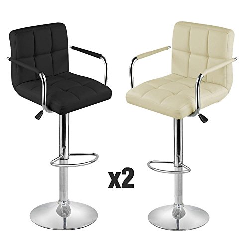 Description : Description: Super modern and contemporary design High quality electroplating steel constructed, strong and durable Great for bars, pubs, coffee shops or just home use Features: 360 degree swivel seat top Gas-lift mechanism for height adjustment Electroplating steel base, leg and armrest Supportive backrest and footrest Easy assembly, comfortable padded seat PU leather surface, easy to clean Weight Capacity: about 120kg(Max.) Material: electroplating steel, premium PU Approx. Weight: 7.5kg Backrest Height: 32cm Max. Overall Height 112cm Seat Size: about 44cm x 38cm Seat Thickness: about 8cm Armrest Height: 22.5cm Footrest Size: 29.5cm x 17cm Support leg with adjustable height from 64cm to 80cm Main Color: Cream Package included: 2 x Swivel Stool (with installation instruction)