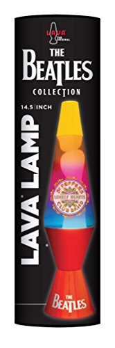 Description : To celebrate The Beatles legacy from 1965-1969, Lava® has released a collection of commemorative Lava Lamps. This Beatles Lava Lamp draws inspiration from the album artwork of Sgt. Pepper's Lonely Hearts Club Band and contains multi-coloured wax which ebbs, flows and oozes to create a psychedelic glow. It's a groovy gift for any Beatles fan. Commemorative partnership between two 60's icons. Silk-screened Sgt. Pepper's logo on glass globe. Base and cap decorated with full colour decal. Coloured wax / coloured liquid. Fitted with 25W incandescent bulb. Measures 14.5 inches tall (46.83cm). Supplied in a full colour presentation gift box. ©2015 Apple Corps Ltd. A BeatlesTM Product.