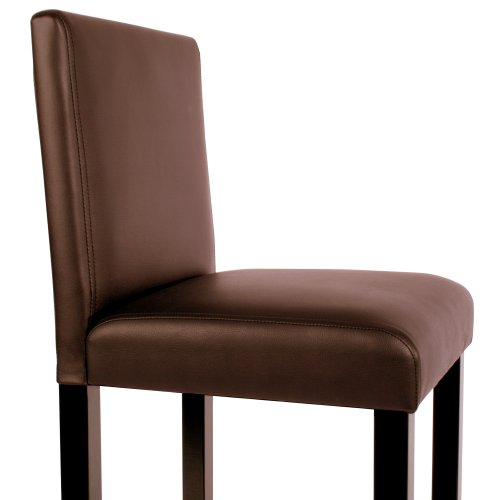 Description : Elegant and ergonomic bar stools will turn your counter into a comfortable bar FEATURES: set of bar stools in colonial style well padded seats provide high sitting comfort footrest for additional comfort ergonomically rounded edges and corners covered with an easy to clean, durable synthetic leather frame made of sturdy solid wood double-cross-stitch on the back of the stool high-quality workmanship Technical information: dimensions (w/h/d): ca. 42/110/41 cm seat height: ca. 75 cm max. load: ca. 150 kg material: solid wood textile raw material composition: 100 % polyurethane colour: black or brown choice of set: 2 pcs, 4 pcs, 6 pcs or 8 pcs Contents include: 2/4/6/8 x bar stools BHK04 in your chosen colour for self-assembly 1x multilingual instructions (DE/FR/EN)