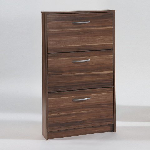 PREMIUM Compact 3 Compartment Shoe Rack Storage Cabinet Unit in RICH WALNUT colour by DMF