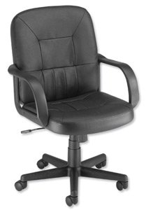 Description : Rutland Managers Armchair by Trexus is sure to give you all the comfort in the office while working.It is ideal for typical desk-task or computer jobs for the daily 7 to 8 hours.The office chair is available in black and comes in leather for a sophisticated and professional look.It can take up to 18 stone/114 kg of weight so you can be assured of its sturdiness.The height of the seat can be adjusted as per the user's preference to get maximum leg support while seated.The chair comes with a set of arms that are of a fixed height.The seat dimensions are WxDxH: 480x460x440-560mm. The backrest height is about 520 mm and it is available in black. Please note that due to the size and weight of this product, fulfilment will take between 2 and 7 business days depending on the delivery location and is subject to stock availability. If delivery is required to other than the ground floor or premises with non-vehicular access there may be an additional delivery charge.